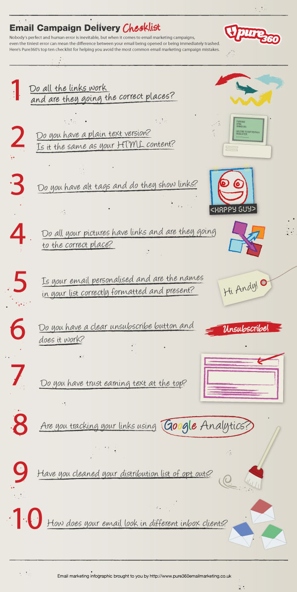 Clearly, your ability to produce high-quality emails reflects on your company as a whole. Missing the mark when it comes to your email can drag down the effectiveness of your entire content marketing strategy. If you aren't sure how to step up your game, here's a great checklist from the pros at Pure360: